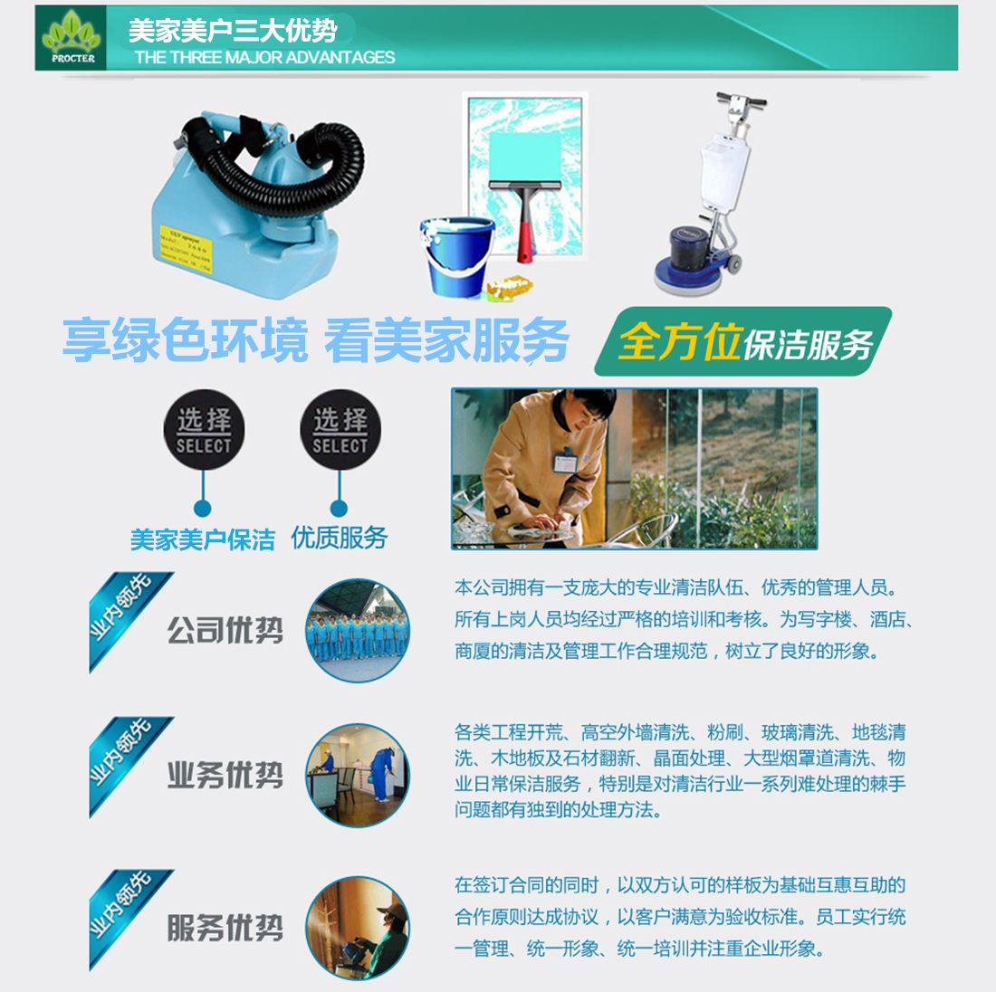 綿陽市美家美戶家政有限公司成立于2004年,是一家專業從事家庭、企事業單位、賓館、酒店等保潔服務的大型服務公司,公司至今成立十一年來現有員工105名,管理人員16名,場地500平米。公司現網點有開元店、高新店、高水店、園藝店、三臺公司、江油公司、遂寧公司等多個服務網點。 公司自成立以來,一直秉承“謀利于耕者,謀福于食者”的宗旨,以“服務全川,***業萬人”為目標,堅持“做一家客戶,樹一個口碑;做一個行業,樹一個品牌”的服務理念,發揚……